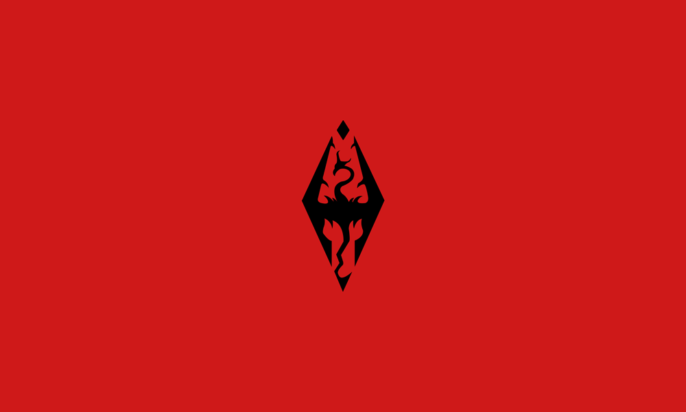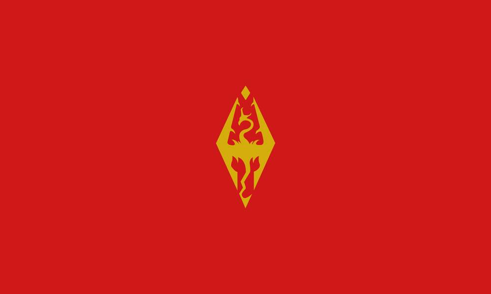 Following the Oblivion Crisis and the end of the Septim bloodline, the flag was changed again, removing the small diamond portion of the charge of Akatosh, which represented the Septim blood. This change was reflected across all new instances of the Akatosh design.